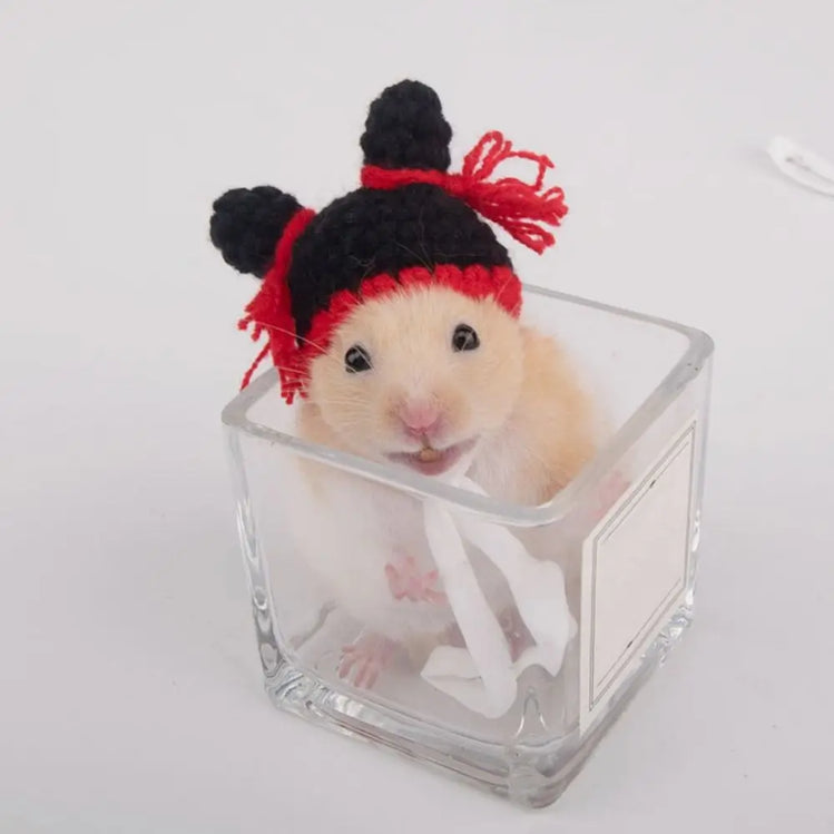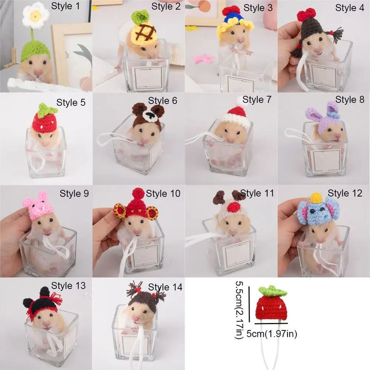 Pet Accessories Cartoon Hamster Hat Soft Handmade Pet Knitted Hat Adjustable Small Pet Caps Photograph