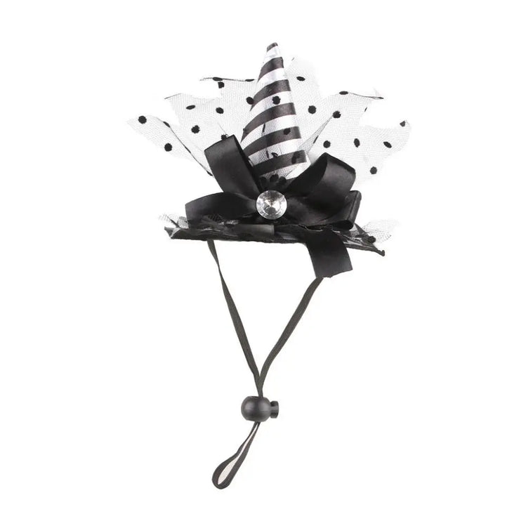 Pet Accessories Decorative Pet Witch Hat Adjustable Stripe Cat Cosplay Hat Lace Dog Bat Hat for Cat Puppy