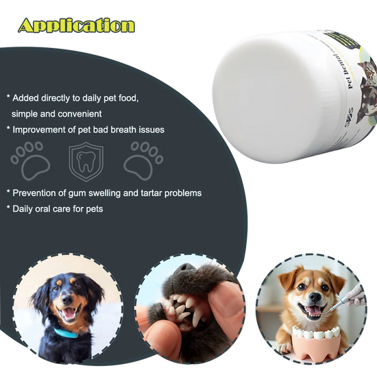 This product is a dental powder specially designed for pets, using natural ingredients that can effectively prevent the formation of plaque, soften existing tartar, improve intestinal health, help eliminate bad breath and swollen gums, and comprehensively enhance the oral health of pets.