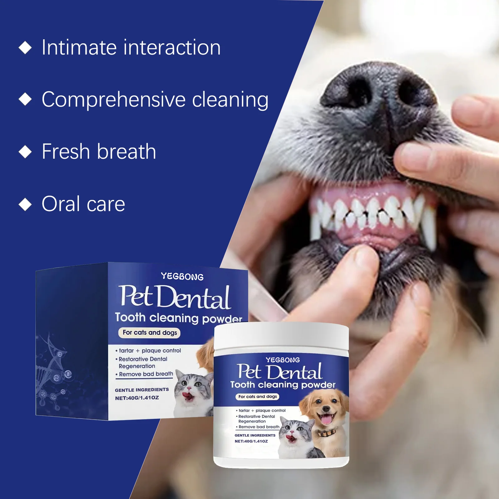 YEGBONG Pet Teeth Cleaning Powder for Dog and Cat Teeth Cleansing Remove Tartar Odor Reduce Bad Breath Keep Fresh Pet Dental Care 40g