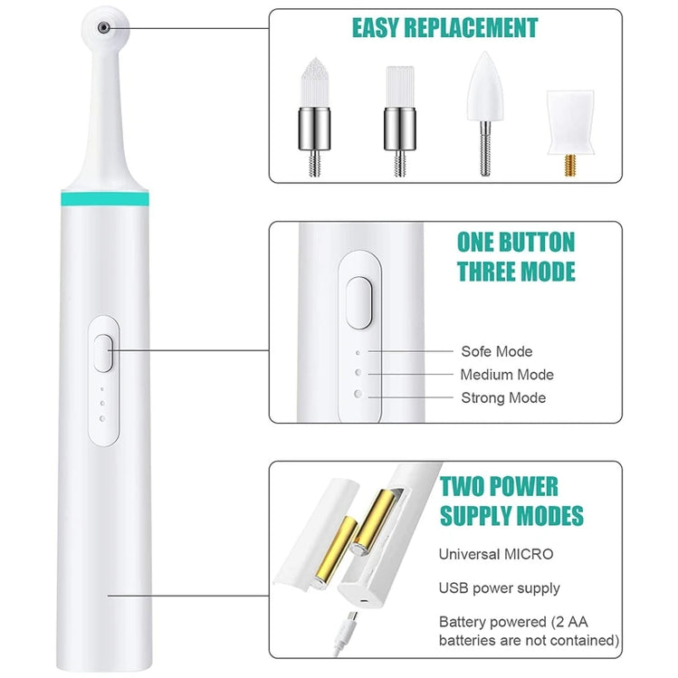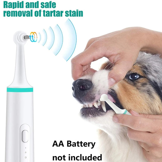 1.Multiple Cleaning Modes (No Battery): The electric dog teeth polisher is powered by USB or AA battery (AA batteries are not included), please don'for t use AA batteries and USB plug-ins at the same for time; 3 Operating modes and high-speed brush rotation help you to remove quickly and effortlessly; The 1.33 inches brush for head fits the mouth of most pets.