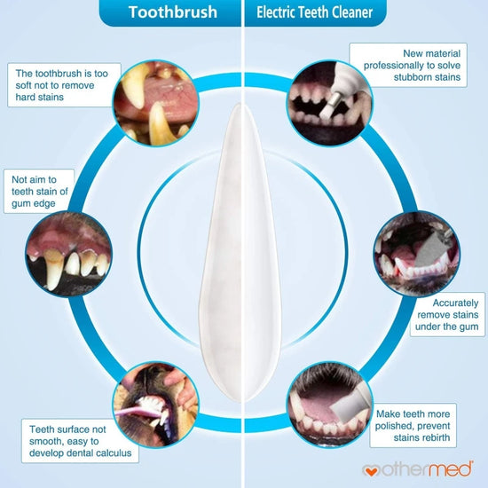 4.Sufficient Quantity: The package contains 1 piece electric teeth polisher with USB cables, 4 different styles of brush heads for different purposes, 4 kinds of tools to give your pet a clean cavity.