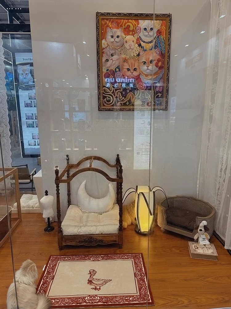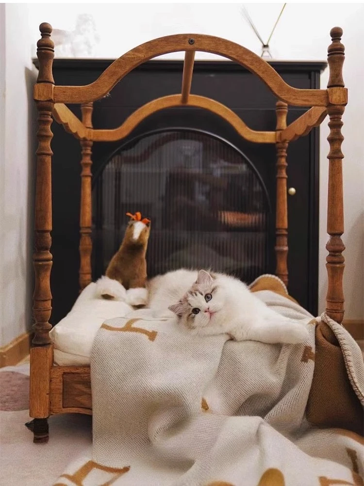 Solid Wood Pet Beds and Furniture Strong and Durable Vintage Small Cat Bed Luxury Design Cat Accessories Pets Products